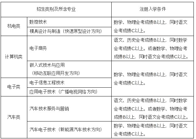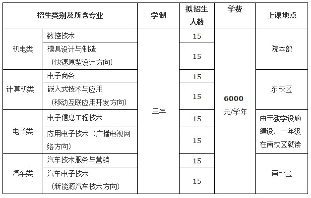 答:1、學(xué)院將根據(jù)各教學(xué)系的辦學(xué)條件和學(xué)生意愿分專業(yè)大類進行錄取。招收機電類、計算機類、電子類、汽車類共計四大類8個專業(yè)(具體招收類別及專業(yè)見我院招生簡章)。