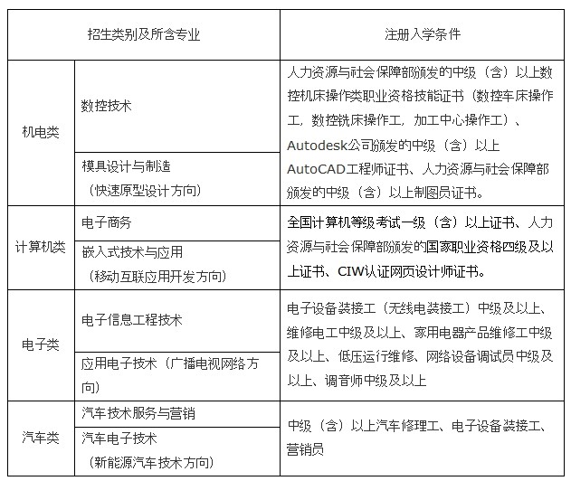 3、對于中等職業(yè)學(xué)校畢業(yè)生,需要具備我院規(guī)定的錄取條件即可注冊入學(xué)(具體內(nèi)容見我院招生簡章)。