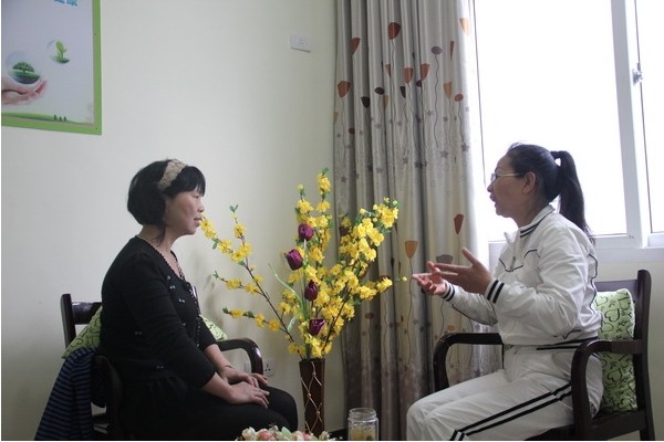 圖為專職心理教師正在為家長答疑解惑。