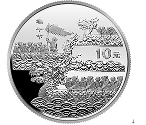 銀幣背面是龍舟競(jìng)賽圖,畫(huà)面上,“龍兵”們正在奮力揮動(dòng)木槳,水面上劈開(kāi)陣陣波浪,三條龍舟爭(zhēng)先恐后地奮勇向前,龍舟尾部的旗幟被迎面的風(fēng)吹得高高飄起。整個(gè)畫(huà)面讓人充分感受到奮發(fā)向上、勇?tīng)?zhēng)第一的氣勢(shì)。聯(lián)想到目前正在開(kāi)展的“抗震救災(zāi)”全國(guó)大行動(dòng),我想,我們不也正需要這樣一種團(tuán)結(jié)一致,不怕困難,奮勇向前,勇奪勝利的精神嗎?