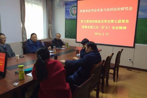 2月20日,研究會(huì)又在河南農(nóng)業(yè)大學(xué)黨委會(huì)議室召開會(huì)議,再次學(xué)習(xí)貫徹落實(shí)河南省法學(xué)會(huì)七屆三次常務(wù)理事會(huì)(擴(kuò)大)精神。會(huì)長黃進(jìn)才、副會(huì)長鄭林、褚金海、胡巍、陳曉景、涂永珍、呂軍書,副秘書長趙寧、黃延廷,以及部分常務(wù)理事共20多人參加了會(huì)議。河南省法學(xué)會(huì)專職副會(huì)長兼秘書長黃建中、研究部主任馬永釗也專程到會(huì)看望大家。