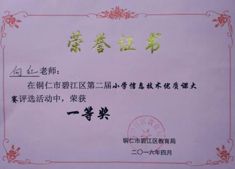 中國教育品牌網(wǎng)訊 2016年4月26日—29日,碧江區(qū)小學(xué)信息技術(shù)優(yōu)質(zhì)課比賽在第十八小學(xué)順利進(jìn)行,來自城區(qū)各小學(xué)、鄉(xiāng)鎮(zhèn)中心校共24位老師參加了比賽,銅仁市第三小學(xué)向紅老師代表學(xué)校參賽榮獲一等獎的優(yōu)異成績,并將代表碧江區(qū)參加銅仁市小學(xué)信息技術(shù)優(yōu)質(zhì)課比賽。