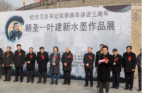 2016年12月31日,為紀(jì)念習(xí)總書記視察曲阜講話三周年,大力弘揚(yáng)中國傳統(tǒng)文化,推動“東方圣城,首善之區(qū)”的建設(shè), “朝圣——葉建新水墨作品展”在山東曲阜隆重開幕。此次活動由中國傳媒大學(xué)、曲阜市文學(xué)藝術(shù)界聯(lián)合會主辦,曲阜市書法家協(xié)會、曲阜市美術(shù)家協(xié)會、 曲阜市收藏家協(xié)會、曲阜市仁和酒窖承辦。