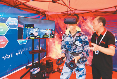 “消防進(jìn)軍訓(xùn)”系列活動(dòng)在北京全市普通高校和高中階段學(xué)校范圍內(nèi)全面開(kāi)展。圖為清華大學(xué)新生正在通過(guò)VR設(shè)備體驗(yàn)火災(zāi)逃生與救援。