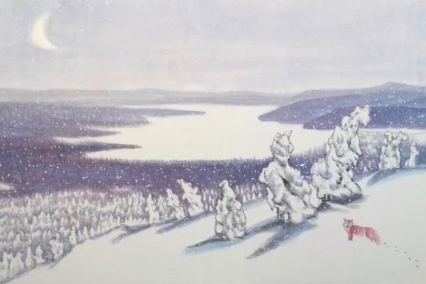 畫(huà)家劉子輿(以下簡(jiǎn)稱畫(huà)家):2019年1月,我去烏拉爾山采風(fēng)。當(dāng)時(shí)天氣寒冷,林中的大雪非常漂亮。登上烏拉爾山頂后,我看到的就是畫(huà)中的這一幕,山頂?shù)难┧啥急伙L(fēng)雪裹住,就像在童話中一樣。遠(yuǎn)處的湖泊和叢林一片浩淼,開(kāi)闊極了。我當(dāng)時(shí)深受感動(dòng),所以就創(chuàng)作了這幅作品。