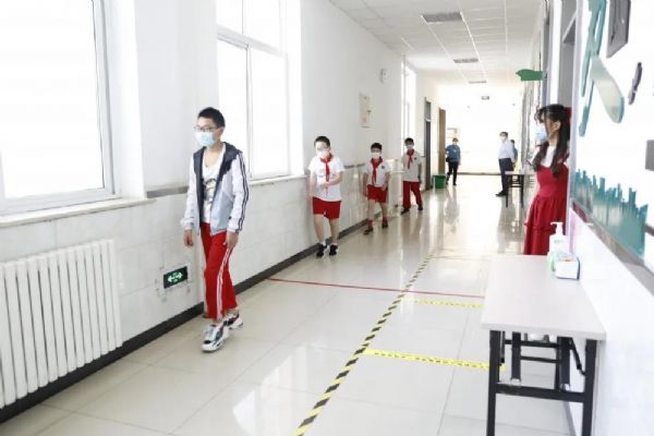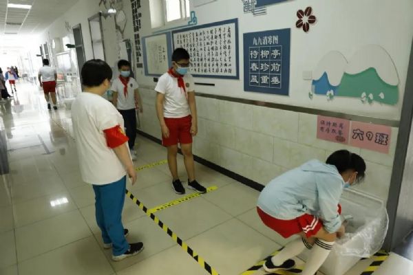 學校依據(jù)“以班級為單位閉環(huán)式”管理原則,采取分時錯峰的方式,做好管控指引,避免交叉聚集。在大家的共同努力下,學校迎來了六年級295名學生,他們經(jīng)過體溫監(jiān)測,身體都非常健康,在執(zhí)勤老師的引導下,有序排隊洗手,保持一米距離,進入樓道和教室。