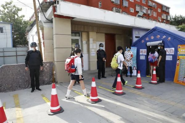 雙井社區(qū)民警協(xié)助學校維持學生入校秩序