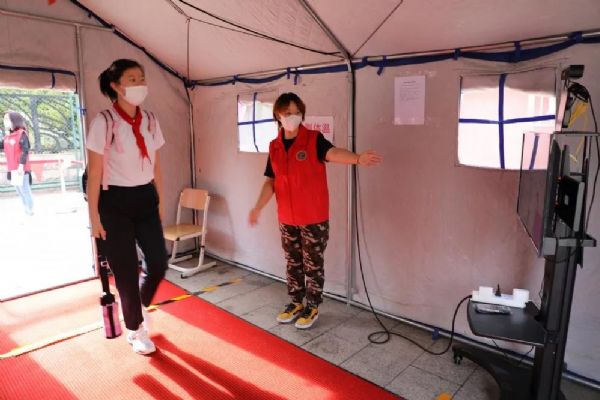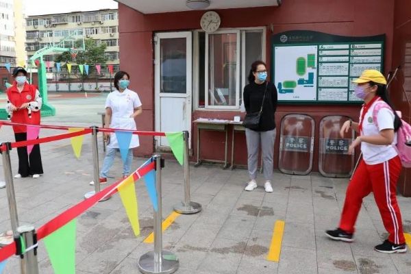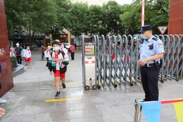 早晨7:00,身著紅馬甲、手持小彩旗的志愿者老師們,站在各自的點位上,微笑著指引學(xué)生分流有序入校進(jìn)班,沉寂了數(shù)個月的校園重獲生機。