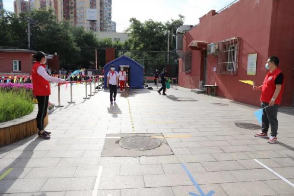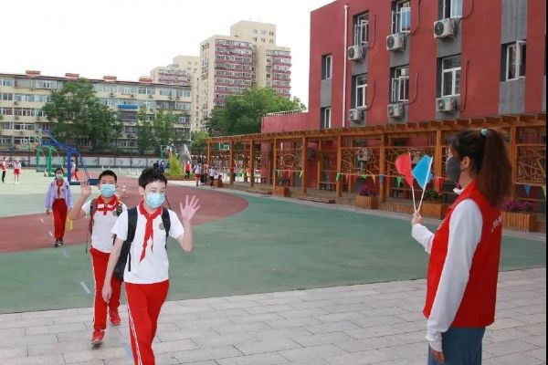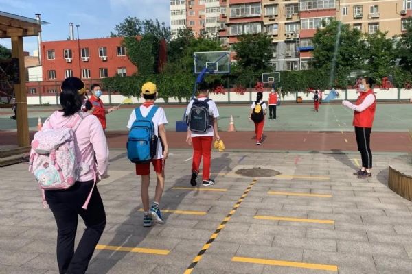 6月1日兒童節(jié),垂楊柳中心小學(xué)六年級學(xué)生迎著初夏的暖風(fēng)重返校園。潘家園街道辦事處工委書記張貴林、副主任周廣軍、街道城管大隊長付占鑫、副隊長熊琳琳、綜治辦主任趙學(xué)軍、建設(shè)辦公室文教事務(wù)副科長李奇、松榆西里社區(qū)黨委書記李秀穩(wěn)、主任劉菁以及教委科室聯(lián)絡(luò)員、學(xué)校責(zé)任督學(xué)、疾控中心駐校醫(yī)生、派出所干警一同來到學(xué)校協(xié)助組織返校復(fù)課。