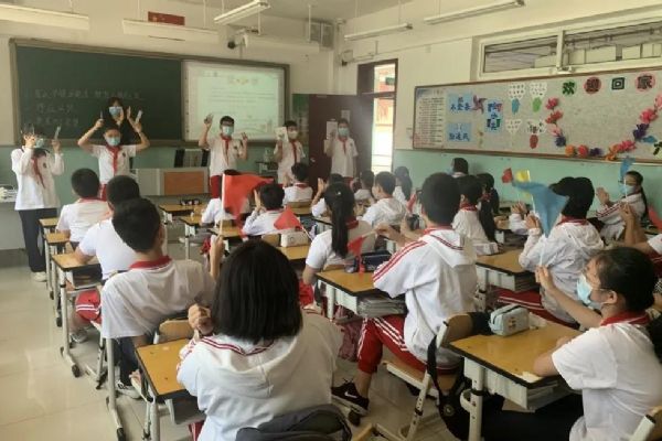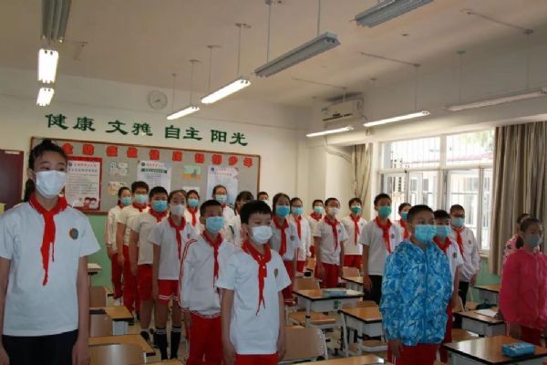 8:00,身著統(tǒng)一校服的學(xué)生高唱國歌,開啟了返校復(fù)課的“第一課”:校長的講話帶領(lǐng)大家回顧那段特殊的日子、學(xué)習(xí)英雄的逆行、思考善良的力度、感受祖國的強大;卓越少年研學(xué)平臺公益課堂特聘北京佑安醫(yī)院疾病預(yù)防專家劉穎教授帶領(lǐng)學(xué)生學(xué)習(xí)新冠病毒知識、明確防控要點、提升自護(hù)能力;德育主任講解一日生活常規(guī),提出分時錯峰要求;隨后,班主任總結(jié)居家學(xué)習(xí)情況,頒發(fā)“五育好少年”獎狀,為學(xué)生送上一份特殊的六一節(jié)禮物。