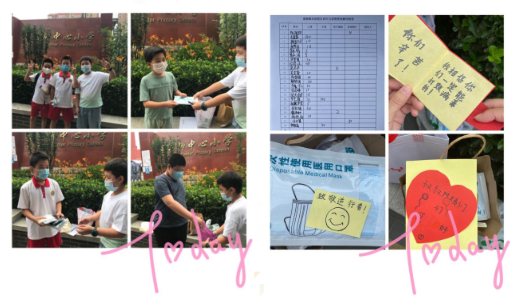 隊(duì)課過后,孩子們自發(fā)收集家中富余的抗疫物資,送到所需要的社區(qū)服務(wù)站獻(xiàn)給志愿者們。孩子們小小的舉動(dòng)感動(dòng)了志愿者叔叔阿姨。