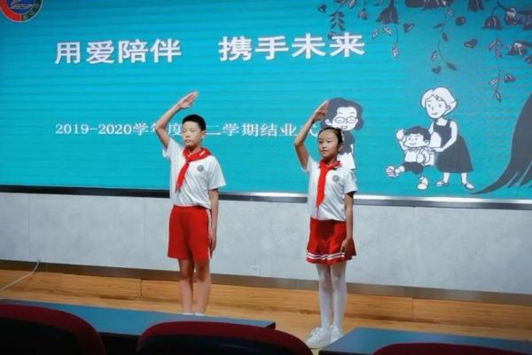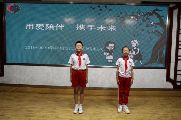 “用愛陪伴 攜手未來”2019--2020學年度第二學期結業(yè)式隨著小主持人高高揚起的隊禮結束。