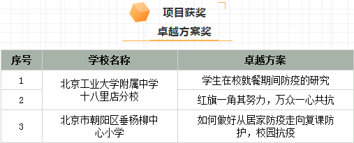 項目研究過程中,讓我們充分感受到學(xué)生作為校園主體,從來都是學(xué);顒拥闹鹘,在守護校園衛(wèi)生、確保師生健康的“防疫”中也不例外,是“校園防疫”的主人翁。他們從家庭抗疫、學(xué)?挂、校外抗疫入手,以團隊的方式,提出切實可行的防控方案,得到了評委的認可,獲得了優(yōu)異的成績。獲獎如下: