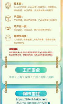眾多人眼里的“香餑餑”崗位你心動(dòng)了嗎?歡迎登錄百度招聘官網(wǎng),選擇【校園招聘】頁(yè)面進(jìn)行投遞,期待各位小伙伴與百度一起乘上新基建之風(fēng),在不同崗位上發(fā)光發(fā)熱,改變世界。