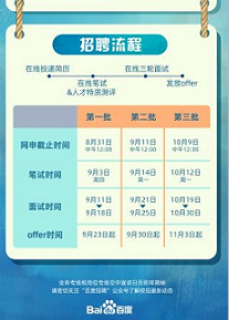 此次校招分為在線投遞簡(jiǎn)歷、在線筆試和文化測(cè)評(píng)、在線面試、發(fā)放offer四大環(huán)節(jié),第一批網(wǎng)申截止時(shí)間為8月31日,第二批次與第三批次的分別于9月11日、10月9日截止。本次校招采取了線上化流程,投遞簡(jiǎn)歷、在線筆試,文化評(píng)測(cè)、三輪面試都將在線上進(jìn)行。海內(nèi)外畢業(yè)生無需奔波就可以順利地在線上完成應(yīng)聘環(huán)節(jié)。