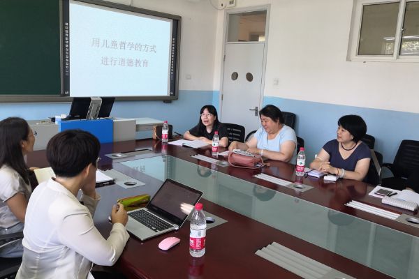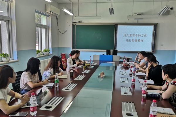 8月14日,趙瀾波老師來到學(xué)校,對我校參與實驗的部分教師進行“用兒童哲學(xué)的方式進行道德教育”的培訓(xùn)。趙老師的培訓(xùn)方式十分獨特,有別于以往專家慷慨激昂的講授,參會人員埋頭奮筆記錄的培訓(xùn)方式,而是在與老師們進行交流的過程中,逐漸將“兒童哲學(xué)的方式”滲透給大家,讓每一個參會教師在個人思考、集體討論的過程中理解兒童哲學(xué)的教育方式是符合兒童認知的、學(xué)生感興趣的、考慮學(xué)生個體差異的方式。在整個的學(xué)習過程中趙老師引導(dǎo)老師們體會用兒童的視角進行觀察、思考,讓老師們理解到要切實的走進孩子,讓孩子們敢于交流,在生生互動的氛圍下,創(chuàng)設(shè)良好的、和諧的、互相信任的環(huán)境提升兒童的思維。