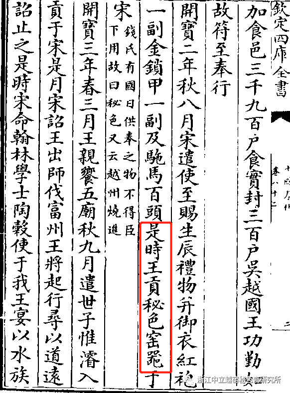 1. 正史記錄見(jiàn)文獻(xiàn)《吳越六·忠懿王世家》記載:是時(shí)王貢秘色窯器于宋。
