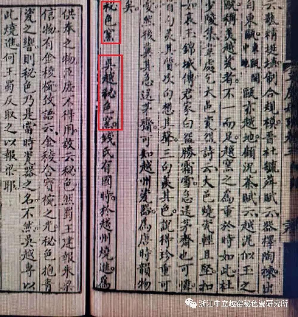 2.《余姚六倉(cāng)志》卷十七錄入宋代顧文薦《負(fù)喧雜錄》《秘色窯》:世言錢(qián)氏有國(guó)日,焼進(jìn),物,民間不得用,故謂秘色。宋怡山《秘色窯》:進(jìn)柴周者刓削尤薄。