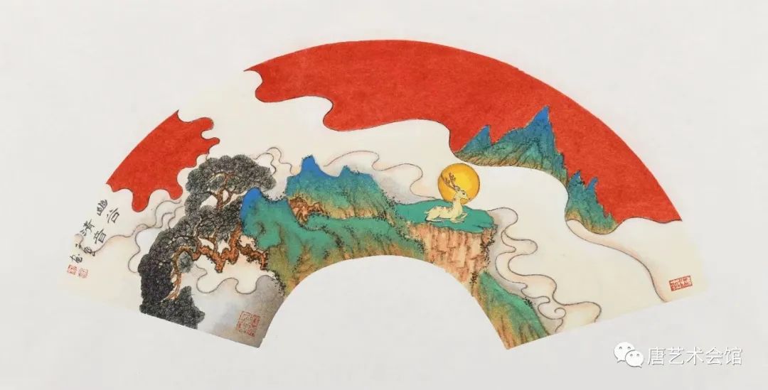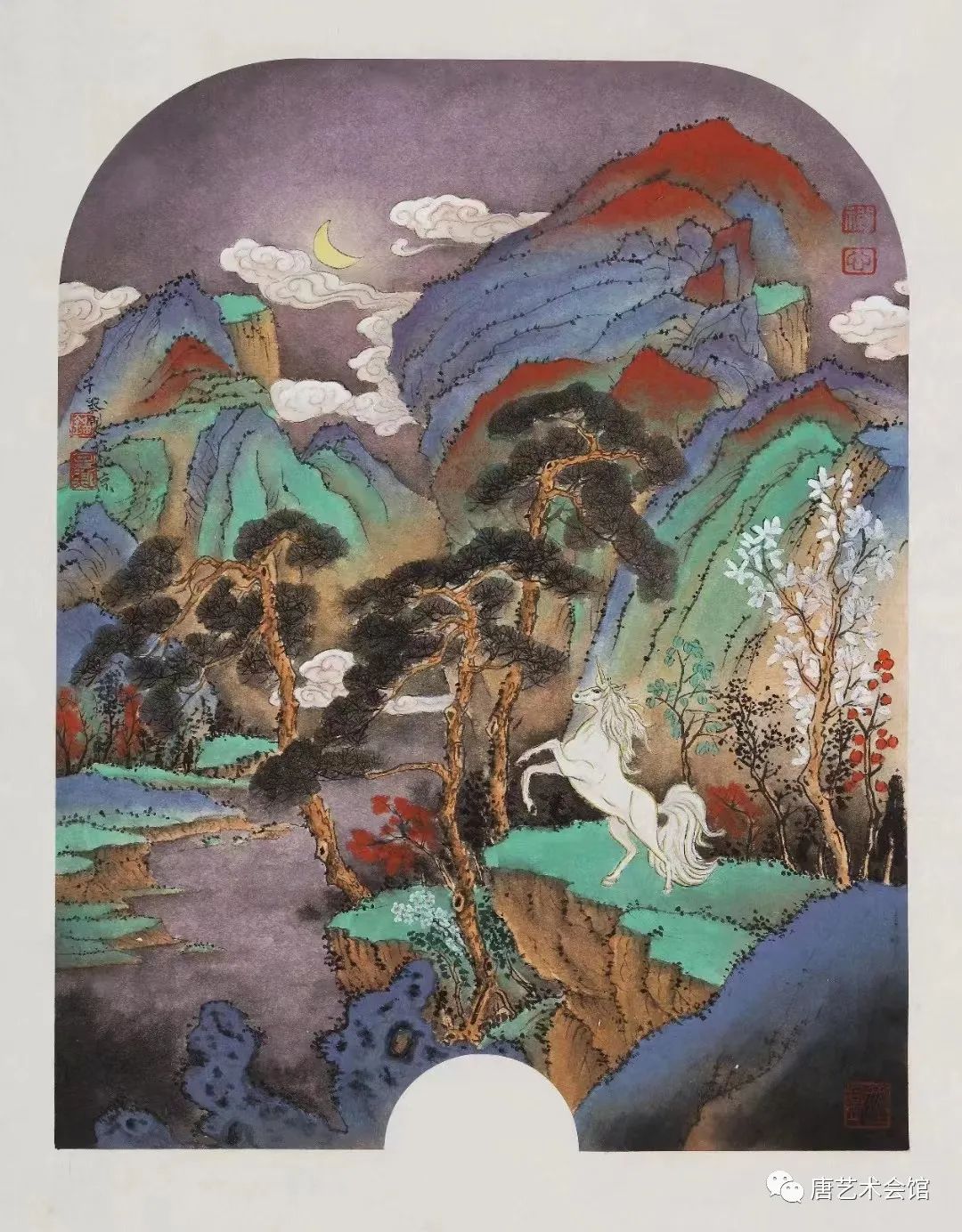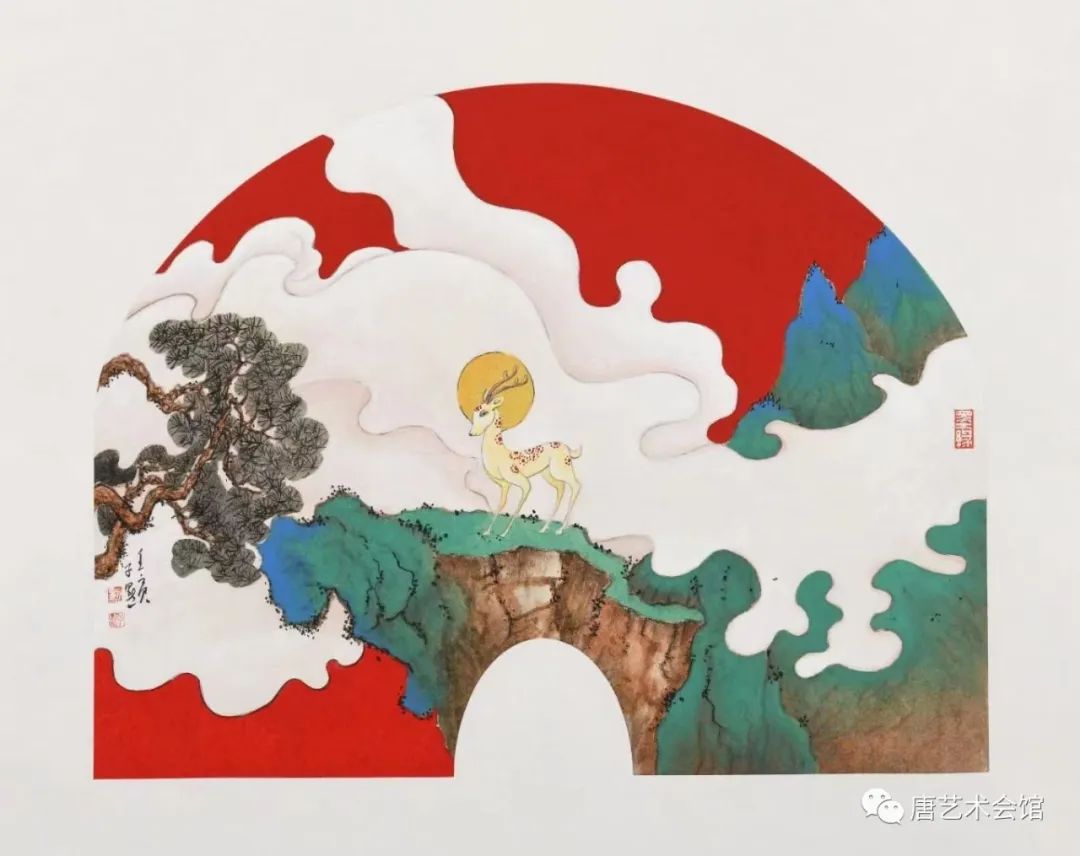其中以最能彰顯民族精神和中華盛景的山水畫居多。出鏡率最高《幽燕金秋圖》、最為經(jīng)典的《江山如此多嬌》、氣勢最為磅礴的《北國風光》、最有朝氣的《小鳥天堂》皆為青綠山水。