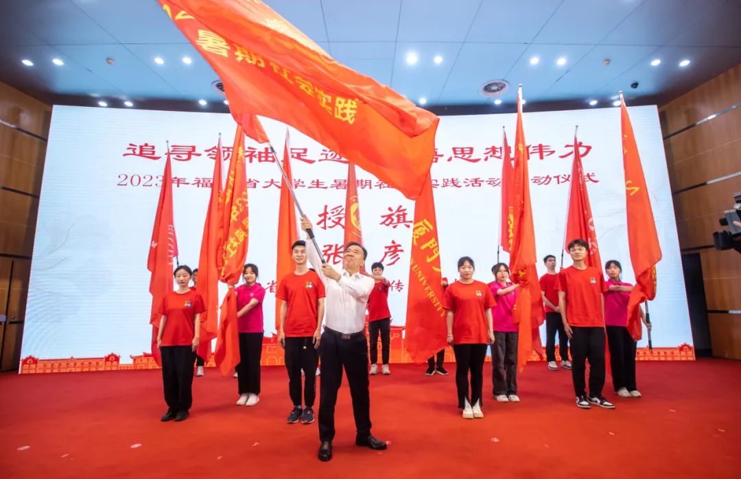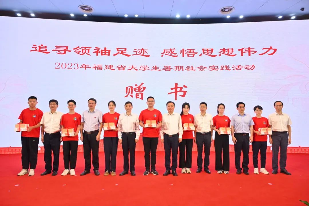 4日,由省委宣傳部、省委教育工委、海峽出版發(fā)行集團聯(lián)合組織開展的“追尋領袖足跡 感悟思想偉力”2023年福建省大學生暑期社會實踐活動啟動儀式在福州舉行。省委常委、宣傳部部長張彥為高校學生代表贈書,宣布實踐活動正式啟動,并為實踐隊授旗。