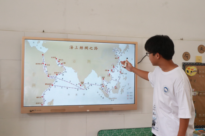 圖 8實(shí)踐團(tuán)隊(duì)員向孩子們介紹海上絲綢之路