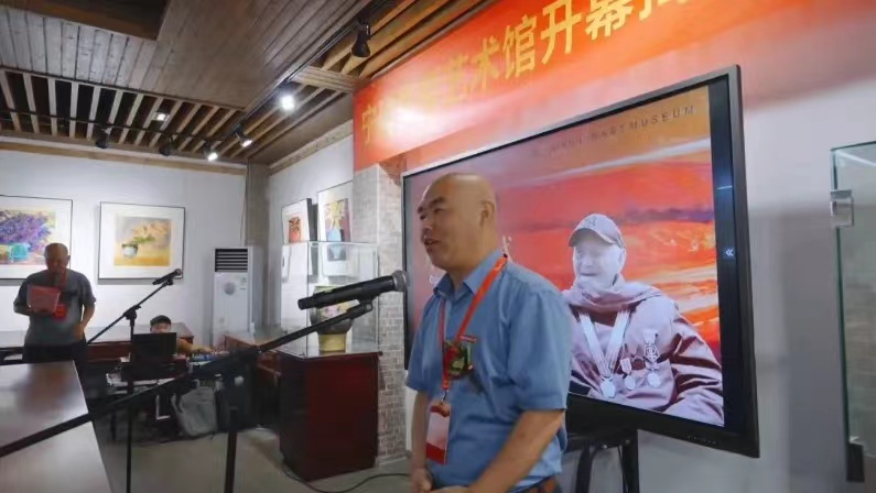 開幕式現(xiàn)場,呂品昌先生、張春萍女士在現(xiàn)場分別發(fā)表了熱情洋溢的致辭。寧璘老師學生代表劉遠長大師、孟樹峰大師對老師藝術(shù)館開幕表示了祝賀,寧鋼教授致答謝辭。
