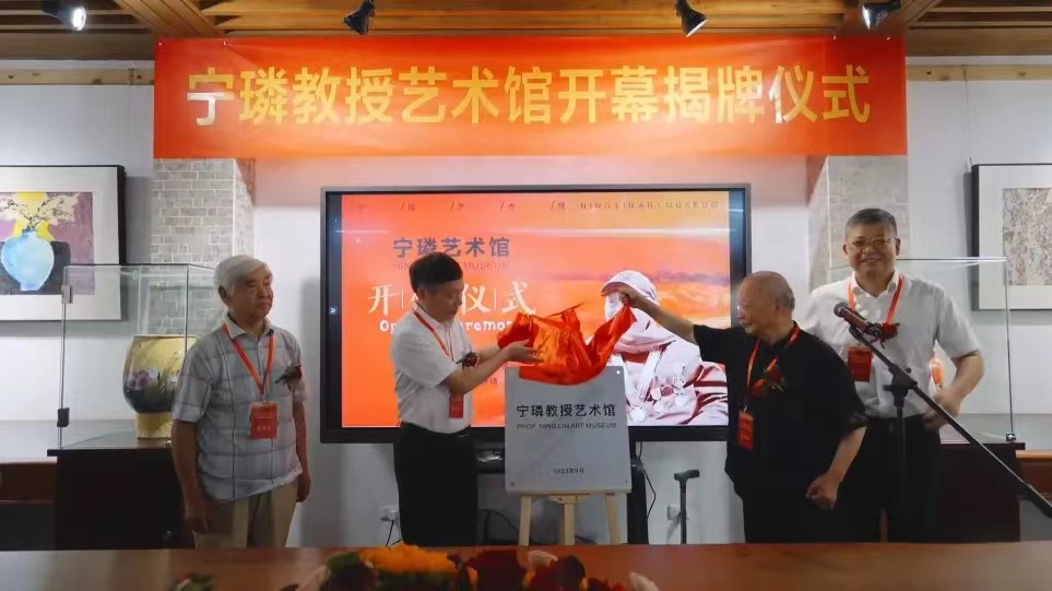 9月8日上午,景德鎮(zhèn)知名老藝術(shù)家寧璘教授藝術(shù)館開館儀式在三寶楊梅亭隆重舉行,活動現(xiàn)場嘉賓云集,高朋滿座,大家懷著對老藝術(shù)家的敬仰與欽佩之心,參加了開幕式,儀式現(xiàn)場,景德鎮(zhèn)市政府領(lǐng)導、陶瓷大學領(lǐng)導、藝術(shù)家代表以及寧璘的眾多學生代表共同出席了開幕儀式,一起重溫作為“畫家”與“藝術(shù)教育家”兩者都做出杰出貢獻的寧璘教授背后的故事。感受他畢生追求、堅定信念的精神。