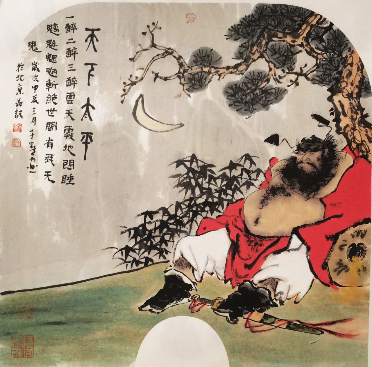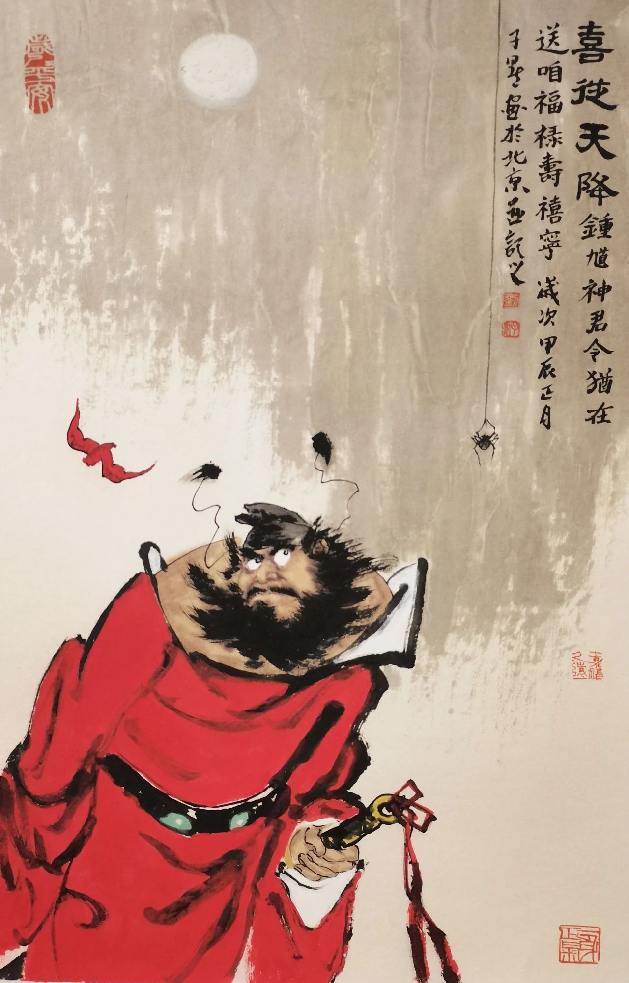 中國傳統(tǒng)“吉祥”文化中,有“諧音”之說,因此,“蝠”亦是“福”。紅色的“蝙蝠”既有“鴻!币徽f。今有畫家子默畫鐘馗“納!,既是納來“鴻!敝。