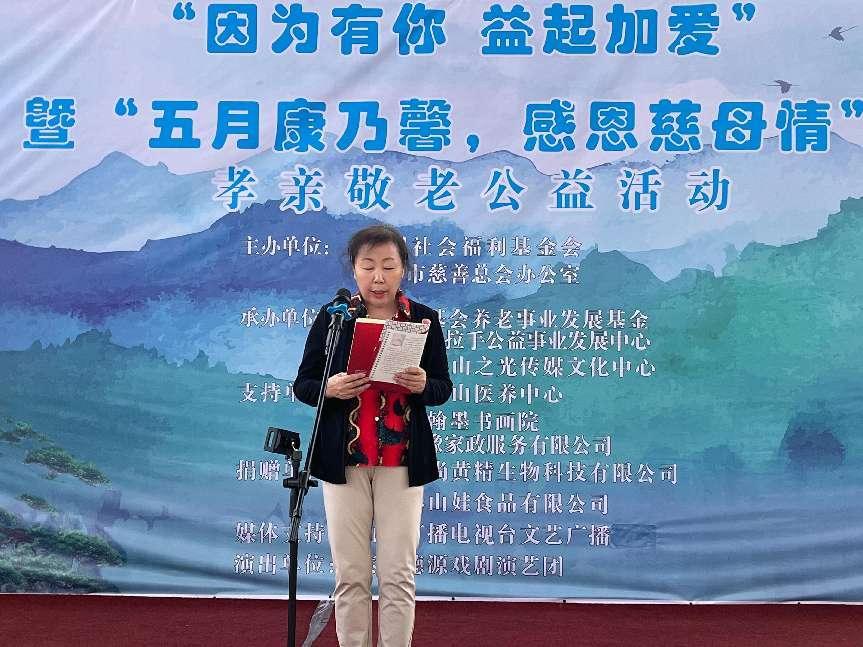 泰山醫(yī)養(yǎng)中心黨總支書記盧愛霞向中國社會福利基金會的義行善舉表示感謝,同時對來自社會及愛心企業(yè)對老年人的關(guān)愛和物資捐贈表示敬意。