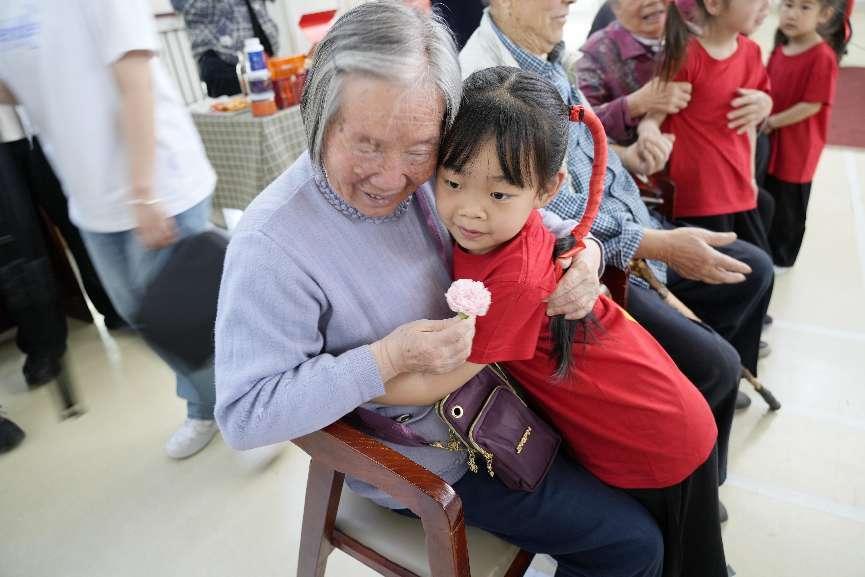 活動以喜聞樂見的形式為老人提供了一場視覺盛宴,小朋友以其生動稚嫩的表演和萌萌的表情讓現(xiàn)場一下子活躍起來,當(dāng)孩子們走下舞臺把一朵朵康乃馨送到老人手里時,被爺爺奶奶攬在懷里的一霎那,濃濃的親情溫馨了現(xiàn)場每一個角落,構(gòu)成一幅共享天倫之樂的甜美畫面。