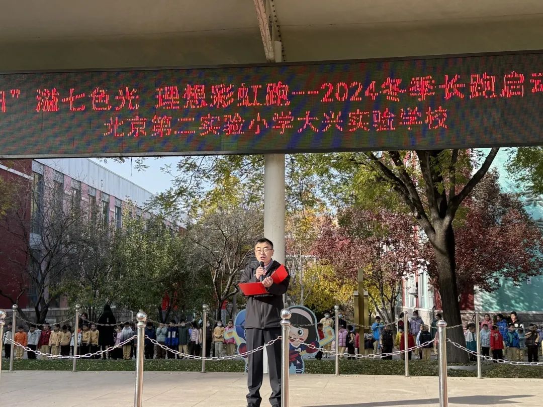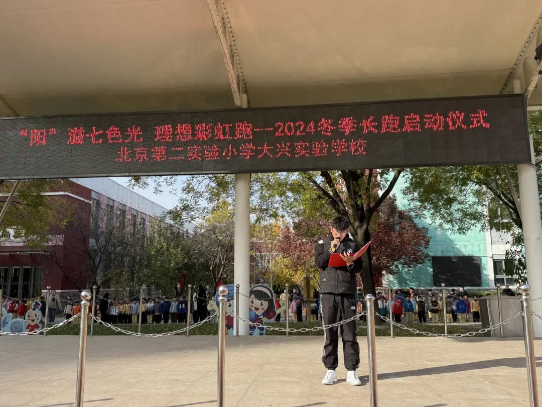 為認真落實教育部提出的“每天鍛煉一小時”的要求,扎實推進體育大課間活動,激勵全校師生加強體育鍛煉,養(yǎng)成良好的運動習(xí)慣,確!敖】档谝弧钡慕逃砟盥涞綄嵦帲2024年11月18日,北京第二實驗小學(xué)大興實驗學(xué)校舉行了“‘陽’溢七色光 理想彩虹跑”——2024年冬季長跑啟動儀式。本次啟動儀式由彭燦老師主持。