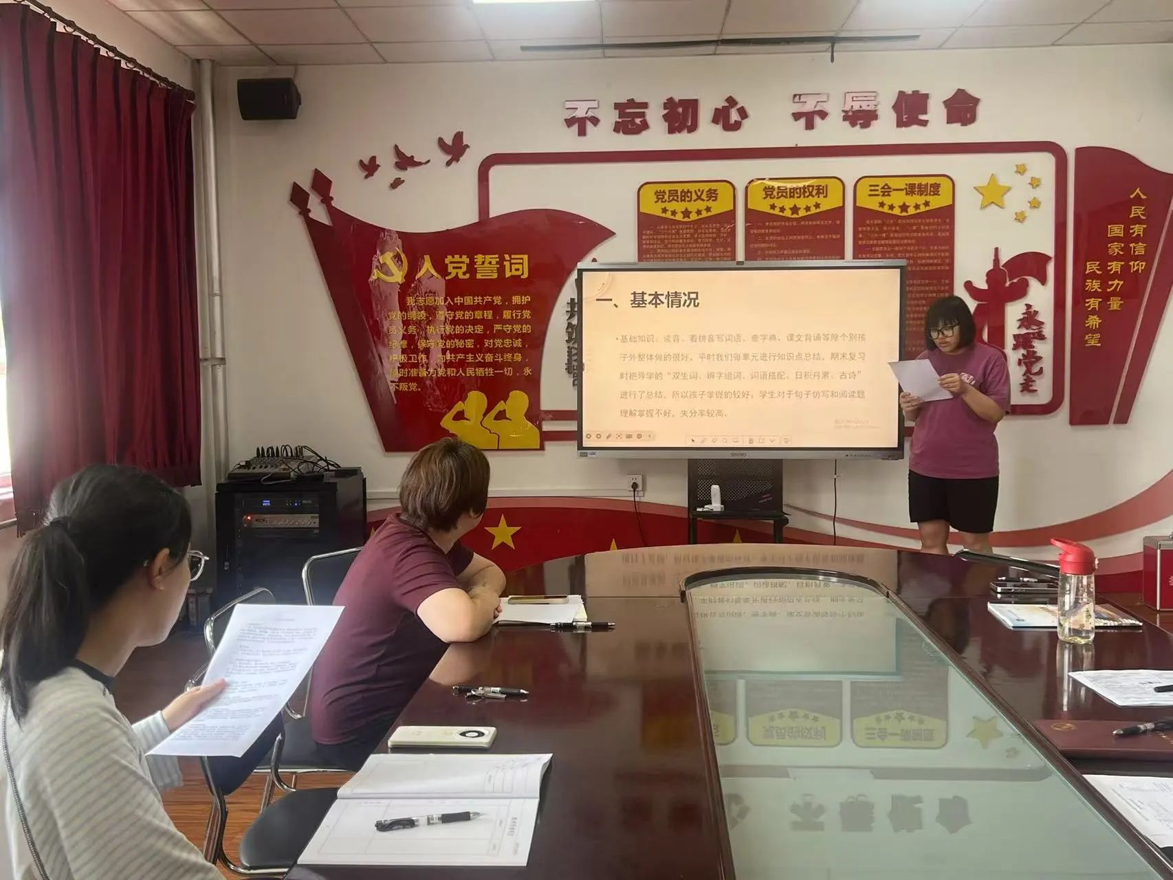 雒主任從析過(guò)往、明方向、思今后三個(gè)方面進(jìn)行發(fā)言。析過(guò)往:強(qiáng)調(diào)老師們要關(guān)注命題方向、關(guān)注學(xué)生核心素養(yǎng),發(fā)現(xiàn)共性問(wèn)題;明方向:要認(rèn)清形勢(shì),激發(fā)學(xué)生內(nèi)驅(qū)力,教學(xué)上要向內(nèi)求;思今后:她希望老師們從暑假做起,要努力培養(yǎng)學(xué)生書(shū)寫(xiě)、閱讀和運(yùn)動(dòng)習(xí)慣。