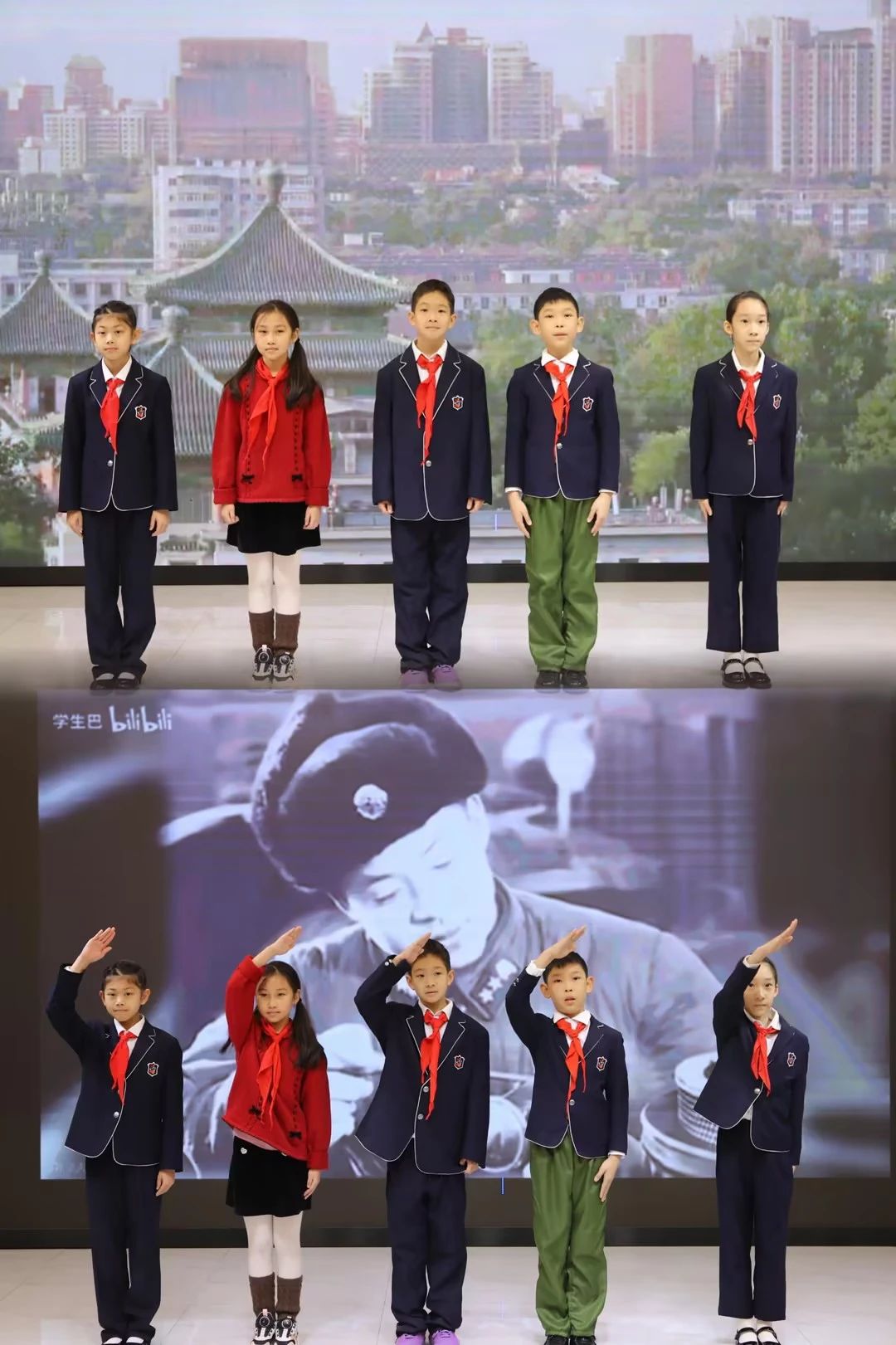 活動在一場精彩的情景劇《雷鋒的故事》中拉開帷幕。隊員們用真摯的表演重現(xiàn)了經(jīng)典場景,將雷鋒幫助老人過馬路、車站幫助補票的故事搬上舞臺。舞臺上,泛黃的日記本投影與鮮紅的紅領(lǐng)巾相互映襯,將隊員們帶入了那個質(zhì)樸溫暖的年代,雷鋒的形象在隊員們心中愈發(fā)鮮活,其精神也在隊員們心底悄然扎根。