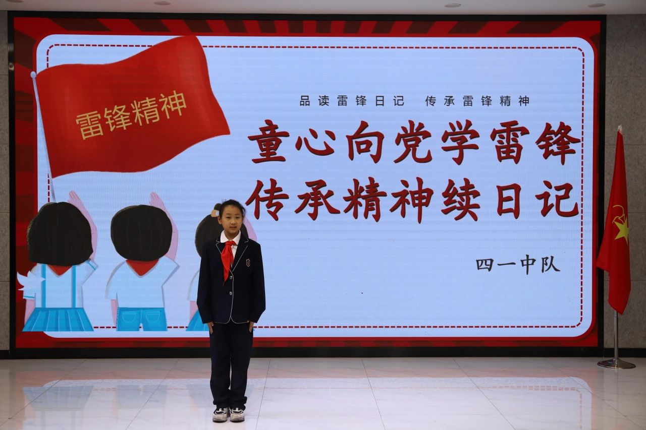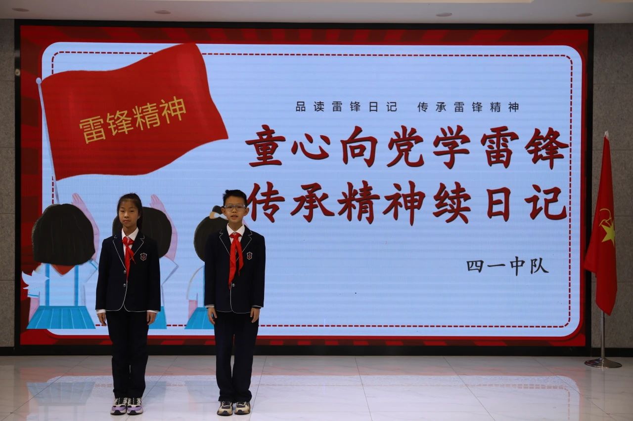 為傳承雷鋒精神,厚植愛黨愛國情懷,四1中隊以"童心向黨學(xué)雷鋒 傳承精神續(xù)日記"為主題,開展了主題隊日活動。隊員們通過情景劇、原創(chuàng)朗誦、合唱等形式,生動詮釋了新時代少先隊員對雷鋒精神的傳承與踐行,讓紅色基因在校園里煥發(fā)新光彩。