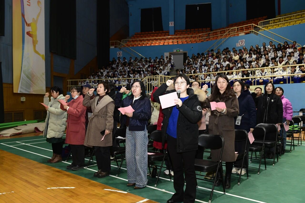教師團(tuán)隊在熊潔婕主任帶領(lǐng)下莊嚴(yán)宣誓:肩負(fù)使命,科學(xué)備考;認(rèn)真工作,嚴(yán)抓落實;奉獻(xiàn)熱忱,關(guān)愛學(xué)生;耐心答疑,熱情指導(dǎo);精講巧練,把握方向;愿為基石,培育棟梁。決戰(zhàn)100天,我們定會竭盡全力;拼搏100天,鑄就學(xué)校新的輝煌!