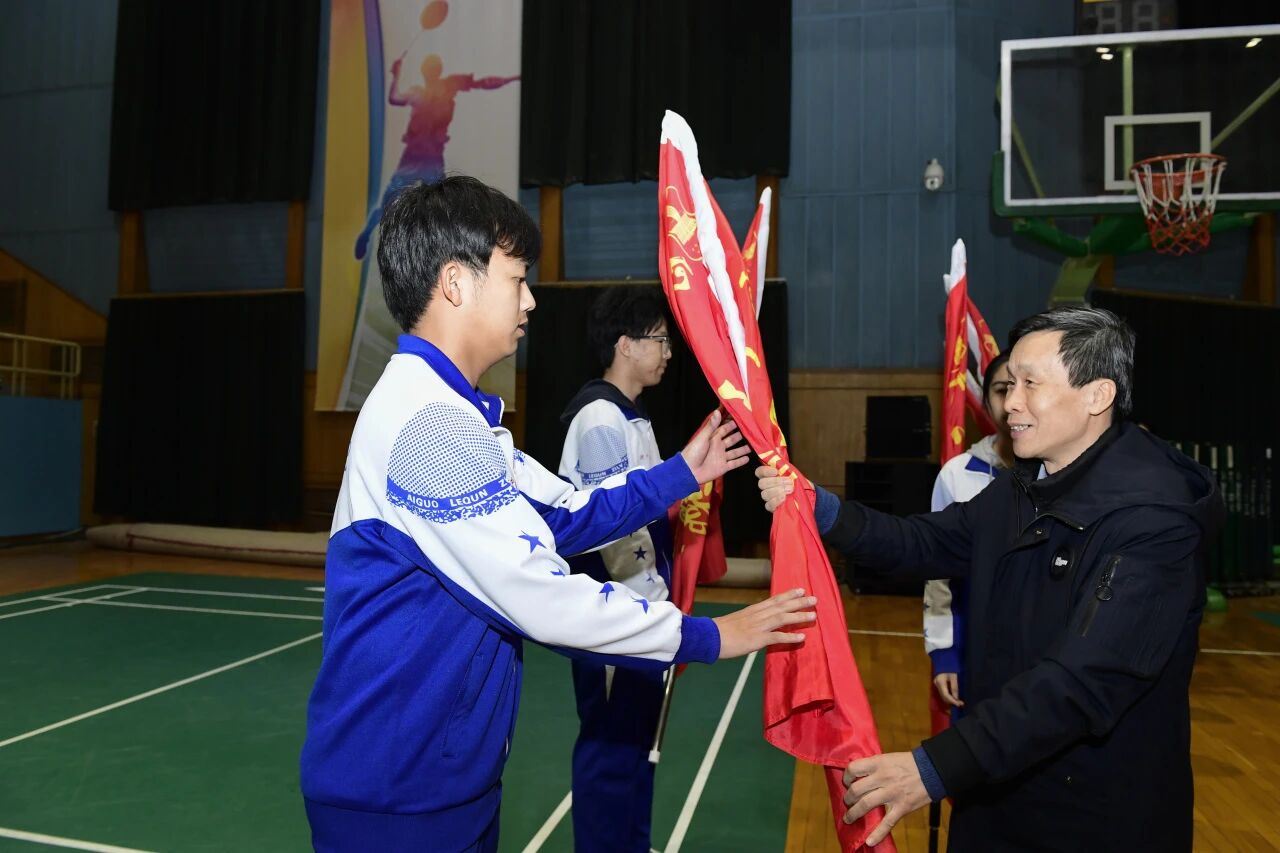 惜時奮進(jìn)趁春風(fēng),戰(zhàn)旗招展義氣濃。謝宏春副校長、毛燕寧主任為高三同學(xué)們送上祝福并將象征拼搏與榮耀的戰(zhàn)旗鄭重授予高三各班。這不僅是戰(zhàn)旗的交接,更是信念與使命的傳承。