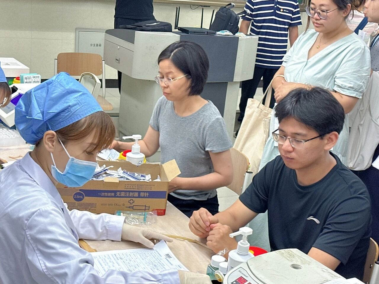 到達(dá)現(xiàn)場后,老師們在工作人員引導(dǎo)下,依次有序地進(jìn)行信息登記、健康體檢與血液初篩。整個(gè)過程嚴(yán)謹(jǐn)、高效,展現(xiàn)了潞河教師隊(duì)伍良好的組織紀(jì)律性和從容奉獻(xiàn)的精神面貌。