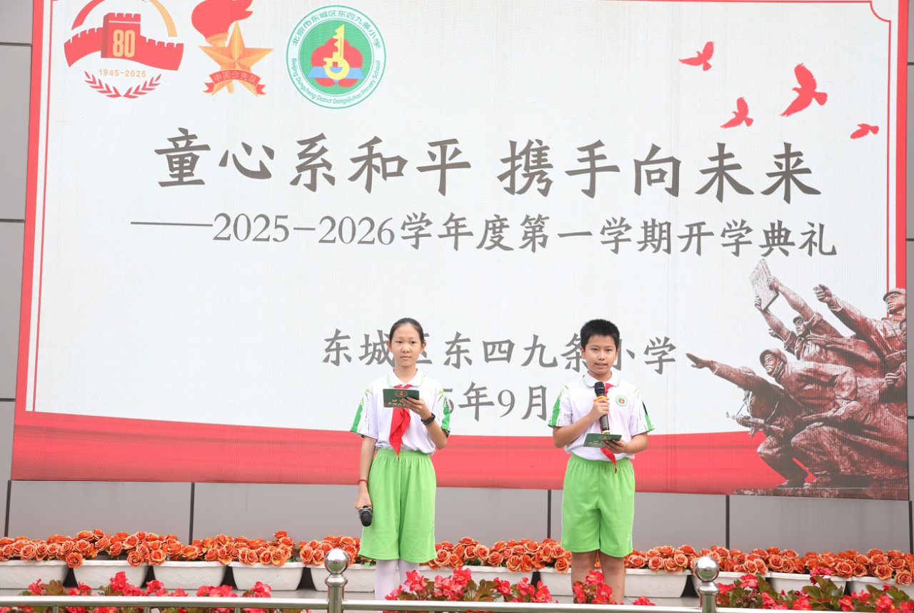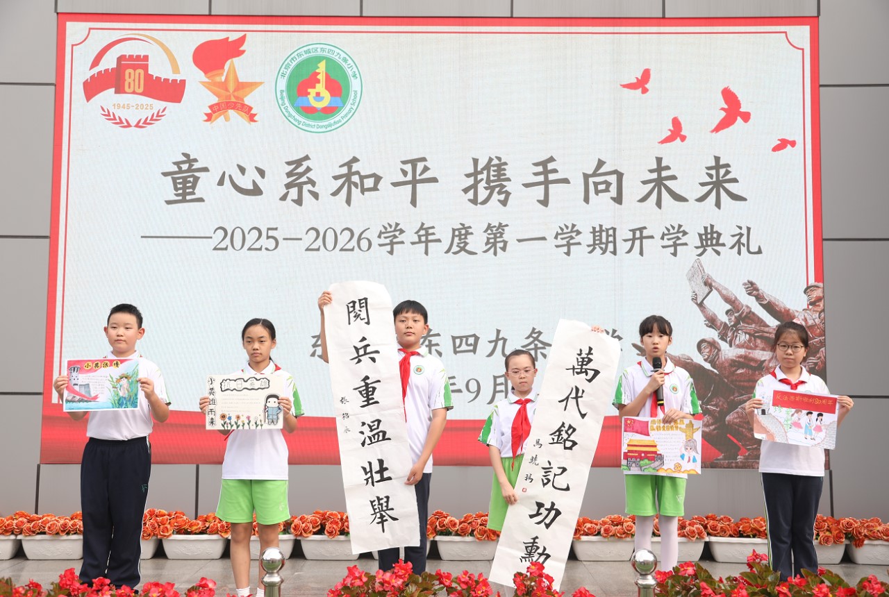 2025年9月4日上午,東城區(qū)東四九條小學(xué)校園里隊(duì)旗飄揚(yáng)、歌聲嘹亮,“童心系和平 攜手向未來”,2025-2026學(xué)年度秋季開學(xué)典禮暨紀(jì)念中國人民抗日戰(zhàn)爭(zhēng)暨世界反法西斯戰(zhàn)爭(zhēng)勝利80周年主題活動(dòng)隆重舉行。