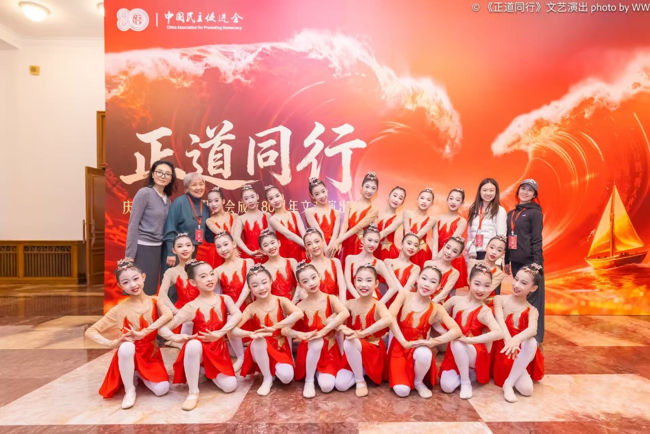 2025年12月10日,北京政協(xié)禮堂內(nèi)華燈如晝、流光溢彩,熱烈的氛圍如洶涌浪潮,席卷每一個(gè)角落。為熱烈慶祝中國民主促進(jìn)會成立80周年,一場以“同心同行八十載,共赴新程譜新篇”為主題的文藝演出在此盛大啟幕。民進(jìn)中央領(lǐng)導(dǎo)、創(chuàng)始人家屬代表以及千余名會員齊聚一堂,共同回首民進(jìn)與黨同舟共濟(jì)、與國同頻共振的崢嶸歲月,感受那段波瀾壯闊的歷史征程。東四九條小學(xué)金帆舞蹈團(tuán)作為此次盛典的重要參演單位,在開幕、核心篇章及尾聲中精心呈上四場美輪美奐的視覺盛宴,用靈動(dòng)的肢體語言生動(dòng)詮釋了民進(jìn)精神的深刻內(nèi)涵,更以藝術(shù)為載體,傳遞著大思政的深刻理念。