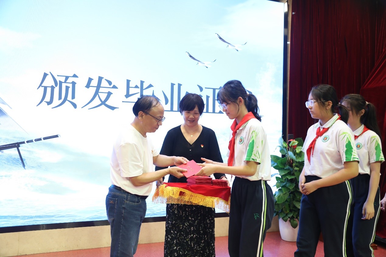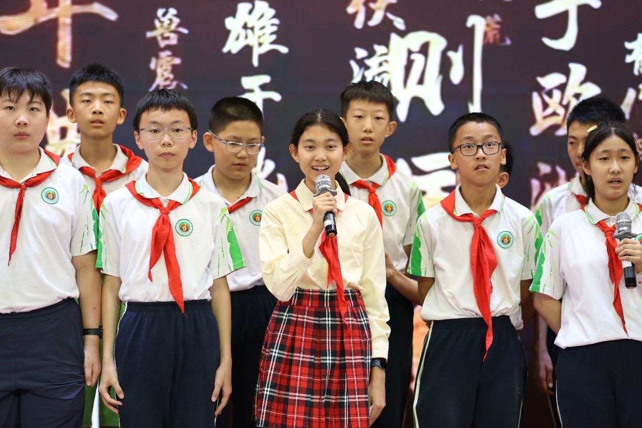 王校長的臨別箴言回憶了自己兒時的種種愉快時光,告誡孩子們生長的意義,鑄就典禮精神內(nèi)核:致敬教師“系好人生第一?圩印钡某跣,禮贊家長托舉成長的勠力同心,更以囑托烙印學(xué)子心間——學(xué)習(xí)為習(xí)慣,感恩即責(zé)任,誠信是實(shí)力,健康鑄氣魄。其“為民族復(fù)興而讀書”的召喚,與《少年中國說》的浩然之聲交響激蕩;終章“千般征途,不負(fù)家國社會”的寄望,化作少年“載譽(yù)榮歸”的鏗鏘誓言。