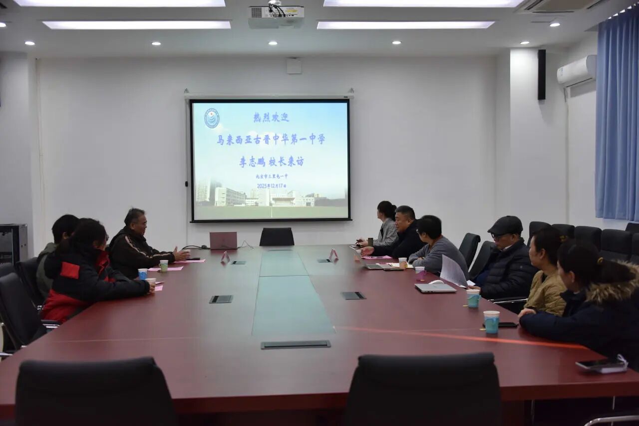 2025年12月17日下午,暖陽和煦,馬來西亞古晉中華第一中學(xué)李志鵬校長等蒞臨北京市三里屯一中參觀交流,開啟了一場跨越國界的教育對話。參加本次座談交流的學(xué)校領(lǐng)導(dǎo)有:三里屯一中賀小兵校長、百子園校區(qū)主管校長閆冉、小學(xué)部主管校長楊茂杰、校辦主任李巖、初中部教學(xué)主任杜雪娥、小學(xué)部德育主任王雅萱。