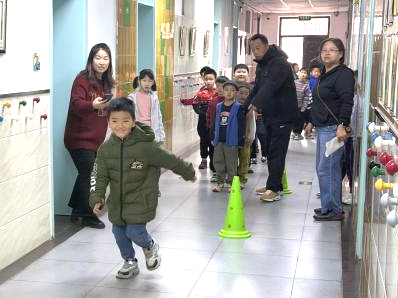 “感悟距離”比賽場(chǎng)地設(shè)在操場(chǎng)上,老師提前設(shè)置了不同的距離標(biāo)識(shí)。要求站在起點(diǎn),用眼睛丈量距離,選手們緊緊地盯著遠(yuǎn)處的目標(biāo),一邊觀察一邊思考,他們有的還會(huì)用手臂比劃著距離,每一位選手都認(rèn)真地給出了自己的答案。比賽中孩子們個(gè)個(gè)全力以赴,向著精準(zhǔn)目標(biāo)進(jìn)發(fā)。在這個(gè)項(xiàng)目中,孩子們充分鍛煉了自己的空間感知和判斷能力。