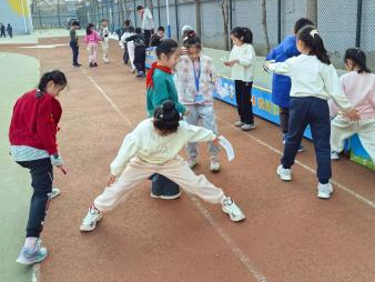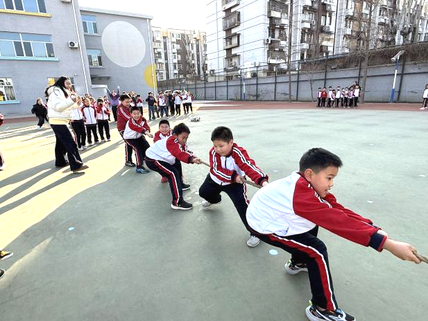 “猜丁殼拔河大賽”將現(xiàn)場(chǎng)氣氛推向了高潮。孩子們分成兩隊(duì),先通過(guò)猜丁殼的方式?jīng)Q定哪一隊(duì)先開(kāi)始拔河。猜丁殼時(shí),大家都全神貫注,眼睛緊緊盯著對(duì)手的手,心里默默盤算著策略。隨著老師一聲令下,拔河比賽正式開(kāi)始。加油聲、歡呼聲此起彼伏,整個(gè)操場(chǎng)都沸騰了起來(lái)。在這個(gè)充滿歡樂(lè)和競(jìng)爭(zhēng)的游戲中,孩子們充分感受到了數(shù)學(xué)與體育相結(jié)合的樂(lè)趣,同時(shí)也鍛煉了團(tuán)隊(duì)的協(xié)作能力和競(jìng)爭(zhēng)意識(shí)。
