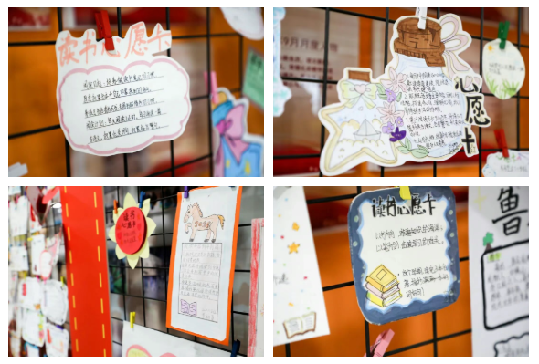 “新年書(shū)愿”,洋溢著對(duì)未來(lái)的美好憧憬。同學(xué)們?cè)诰脑O(shè)計(jì)的“心愿書(shū)簽”寫(xiě)下自己的讀書(shū)心愿:“每天堅(jiān)持閱讀30分鐘”“培養(yǎng)做讀書(shū)筆記的習(xí)慣”“我想和爸爸媽媽一起讀一本歷史書(shū)”……一張張心愿卡,不僅裝點(diǎn)了校園,更承載著孩子們對(duì)新一年的閱讀期待。