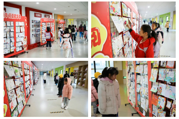 步入教學(xué)樓,一條別具匠心的“閱讀長(zhǎng)廊”映入眼簾,這里匯集了全校師生的閱讀智慧與期許,分為“閱讀碩果”和“新年書(shū)愿”。各年級(jí)學(xué)生展示了本學(xué)期的閱讀成果,包括優(yōu)秀讀書(shū)手抄報(bào)、讀后感、好書(shū)推薦卡、思維導(dǎo)圖等,形式多樣、內(nèi)容精彩。
