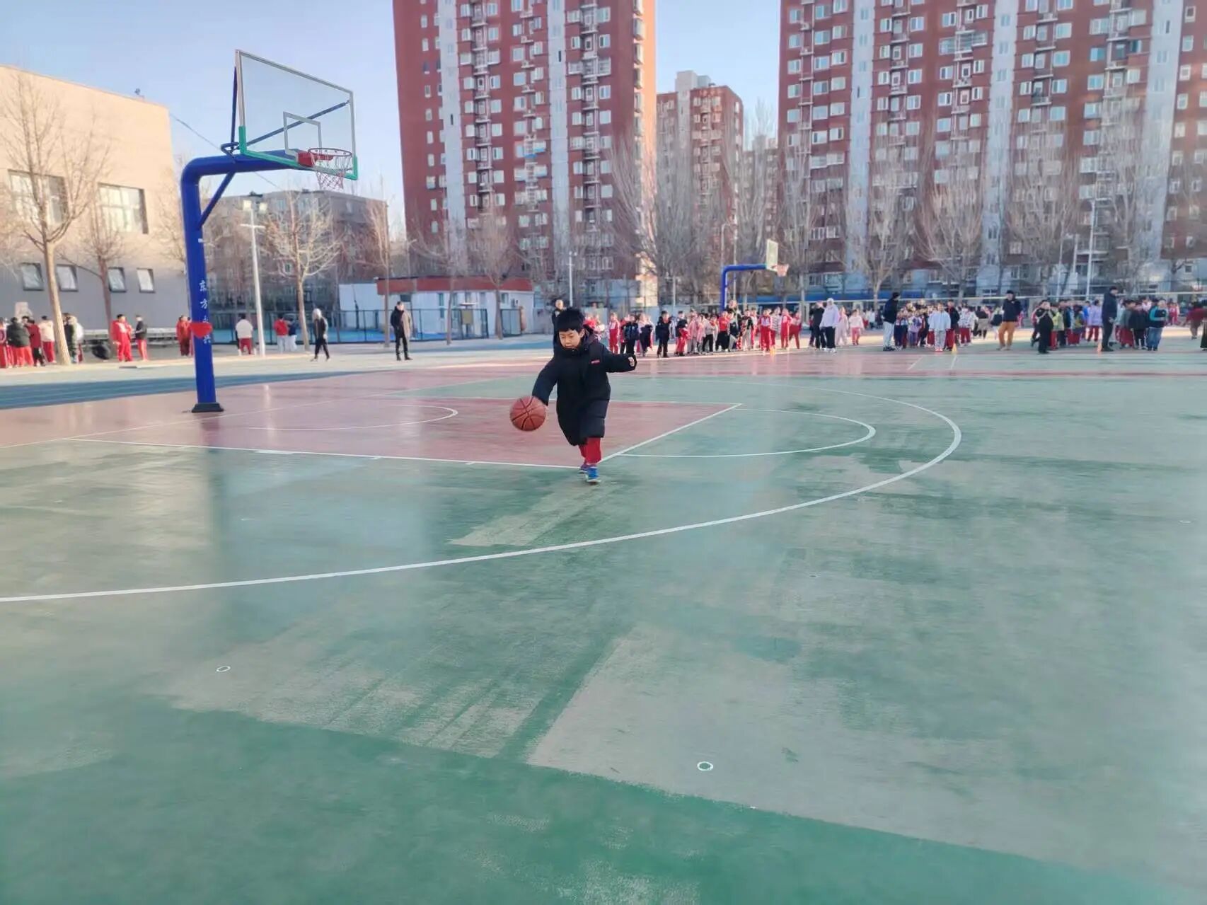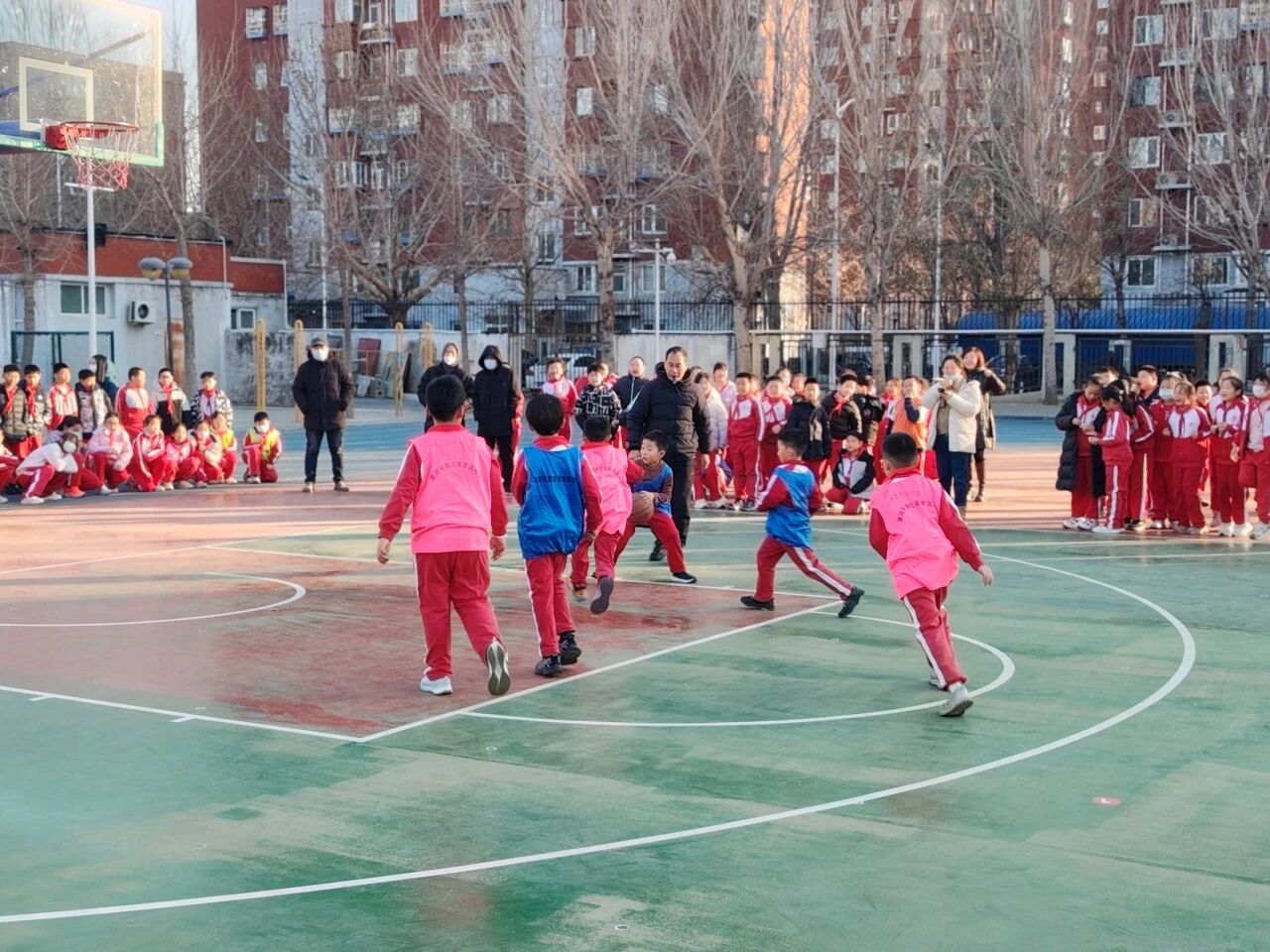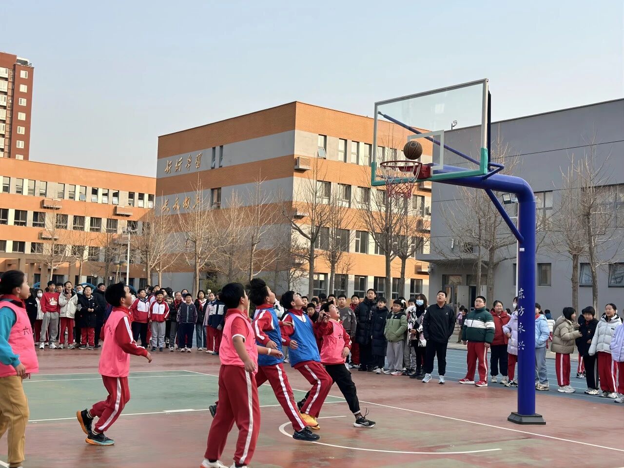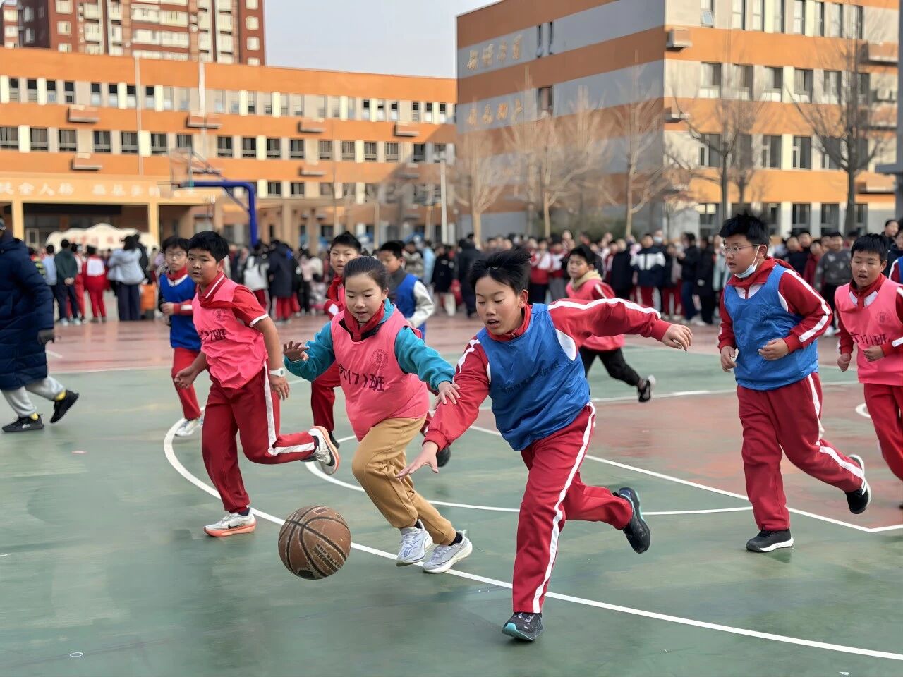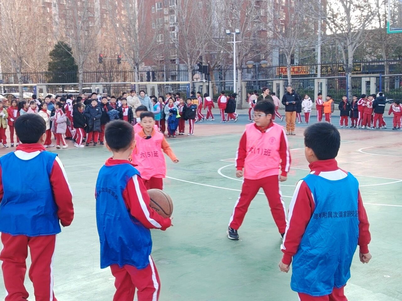 冬日的陽光灑滿次渠家園學(xué)校的操場,籃球撞擊地面的 “咚咚” 聲、師生的吶喊助威聲交織在一起,打破了校園的寧靜。為期一個月的校園籃球趣味班級月賽正如火如荼進行,而三四年級的 3V3 籃球賽,無疑成為整場活動中最耀眼的焦點。專業(yè)的賽場設(shè)施,最純粹的熱愛;精湛的技巧,全力以赴的拼搏 —— 這就是家園校區(qū)潞河娃用汗水書寫的籃球故事。