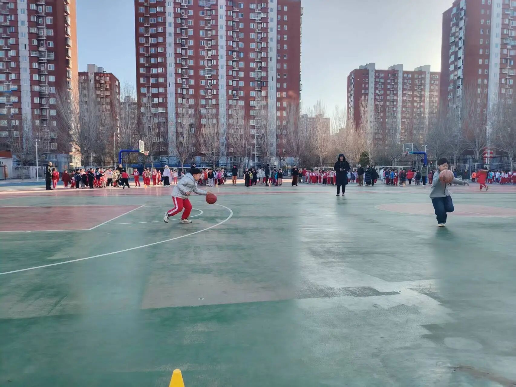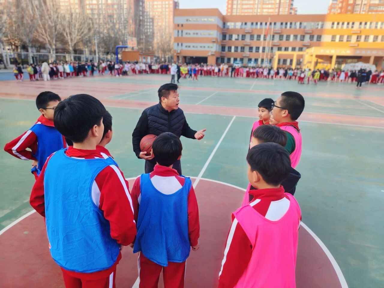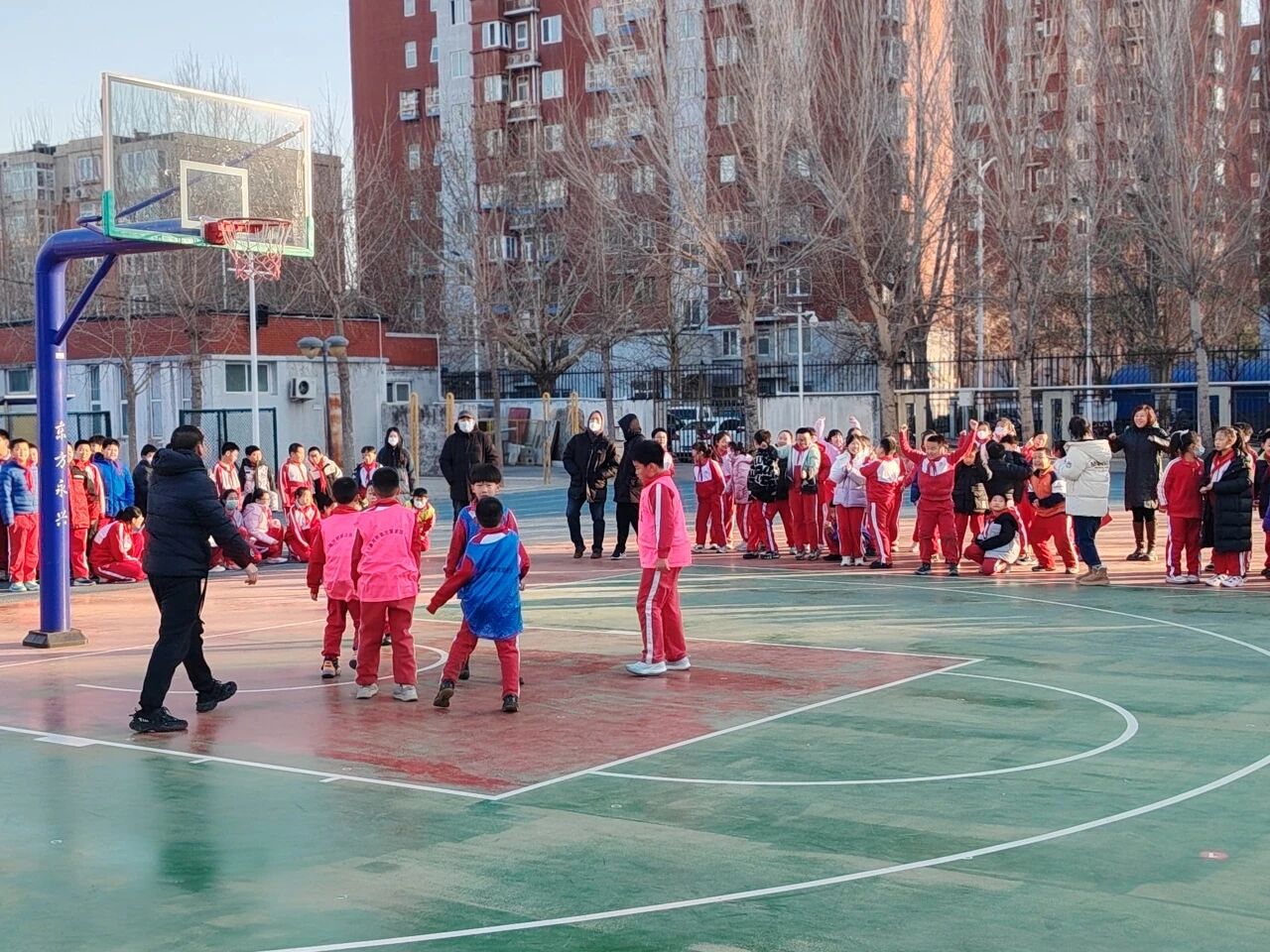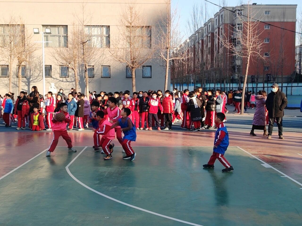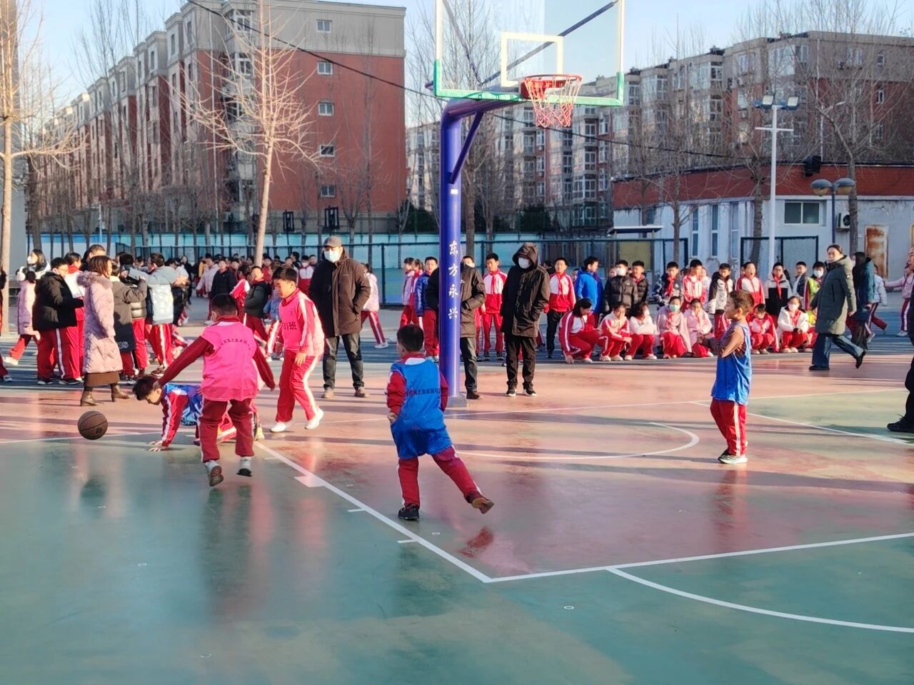 冬日的陽光灑滿次渠家園學(xué)校的操場,籃球撞擊地面的 “咚咚” 聲、師生的吶喊助威聲交織在一起,打破了校園的寧靜。為期一個月的校園籃球趣味班級月賽正如火如荼進行,而三四年級的 3V3 籃球賽,無疑成為整場活動中最耀眼的焦點。專業(yè)的賽場設(shè)施,最純粹的熱愛;精湛的技巧,全力以赴的拼搏 —— 這就是家園校區(qū)潞河娃用汗水書寫的籃球故事。