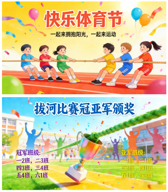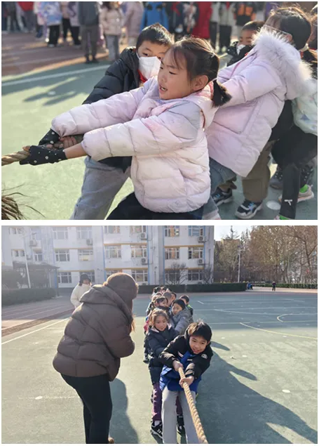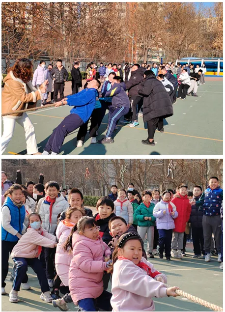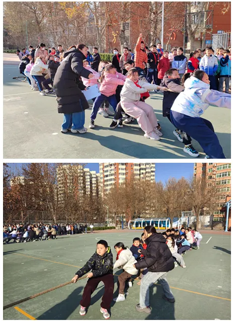 最具人氣的當屬拔河比賽。只見各班選手緊緊攥住繩子,雙腳用力蹬地,身體后傾,一個個小臉憋得通紅。“加油!加油!”場邊的啦啦隊揮舞著小旗子,喊出的口號震耳欲聾。隨著裁判一聲哨響,繩子兩端的同學們齊心協(xié)力往后拉,紅綢帶在中間來回移動,每一寸拉扯都充滿了力量。