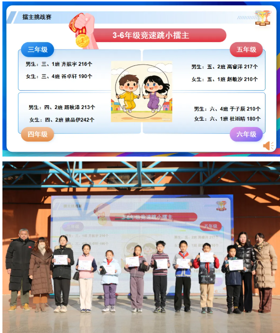 在此,我們也向全體同學發(fā)出邀請:趁著寒假時光,堅持跳繩鍛煉,挑戰(zhàn)206個的小目標,讓運動習慣伴我們成長!讓我們共同期待明年體育節(jié)再相聚,屆時再展少年風采!相信這份對運動的熱愛與執(zhí)著,會伴隨同學們在成長的道路上不斷前行!