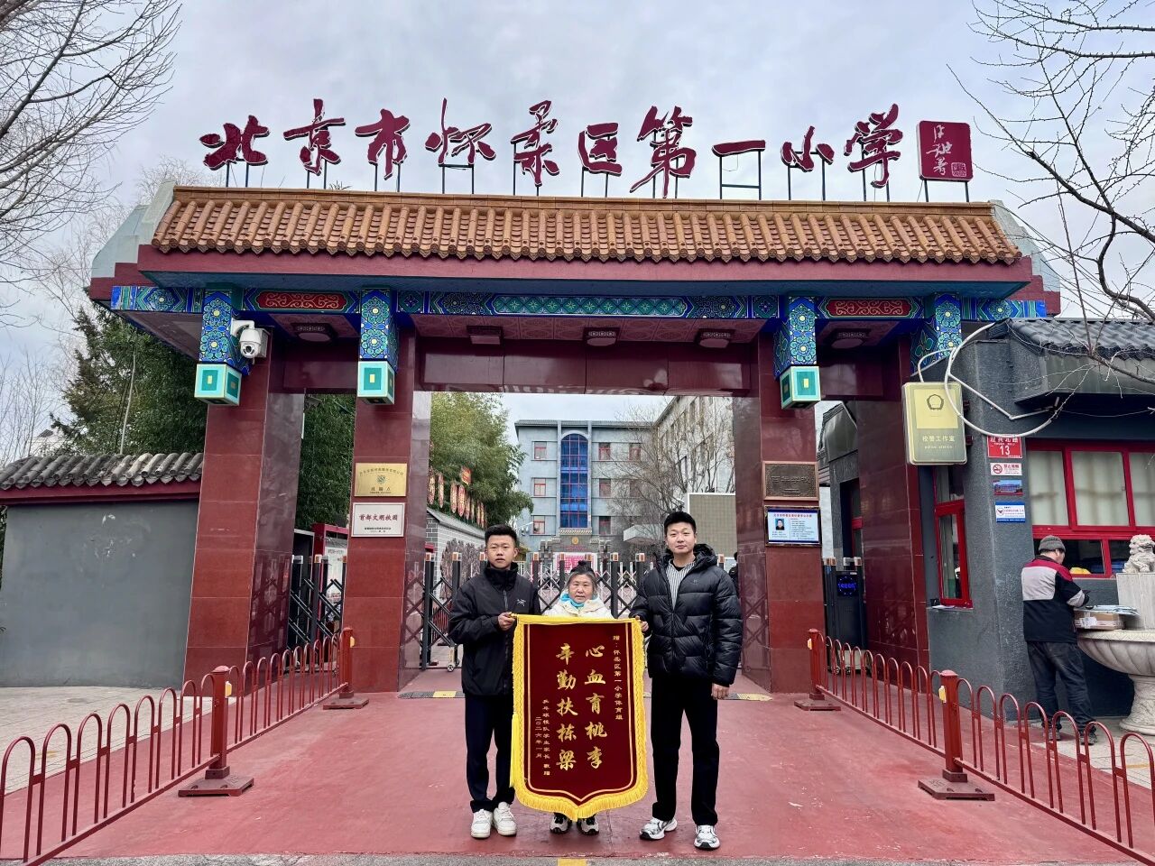 2026年1月7日,懷柔區(qū)第一小學(xué)乒乓球校隊(duì)家長(zhǎng)代表來到學(xué)校,將寫有“教導(dǎo)有方啟人生,精心呵護(hù)育新苗”“小球轉(zhuǎn)動(dòng)大夢(mèng)想,校隊(duì)凝聚拼搏心”“心血育桃李,辛勤扶棟梁”三面錦旗分別贈(zèng)與席鐘義老師、乒乓球校隊(duì)及懷柔一小體育組,以表對(duì)學(xué)校和老師辛勤付出、悉心教導(dǎo)的誠摯謝意。懷柔一小德育副校長(zhǎng)邢小麗、體衛(wèi)主任趙東旭及體育組組長(zhǎng)胡聰?shù)叫iT口迎接家長(zhǎng)的到來。